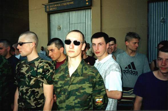 Спецназ, группа захвата :o)) Нет. это всего лишь я и Максим (слева) крупным планом. Между нами голова Дениса. Все в комуфляже. Всё как положено. Фотография была сделана для того, чтобы запечатлеть меня практически сразу после стрижки.