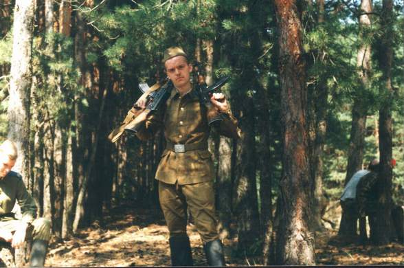 Эта фотография заслуживает отдельного внимания. На ней изображен наш замкомвзвода - Иванов Павел. Личность о которой нужно говорить отдельно. Одного автомата ему, конечно, мало.