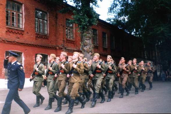 Что-то меня опять на пионерию потянуло. А на самом деле это круг почета по плацу после принятия присяги.