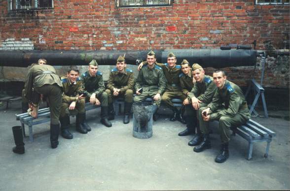 Здесь изображено не чот иное, как наш отдых в то короткое время, пока кто-то доздает автоматы, кот-то заправляет портянки (На этой фотографии это курсант Соболь) и, что самое главное, нас никто не трогает.